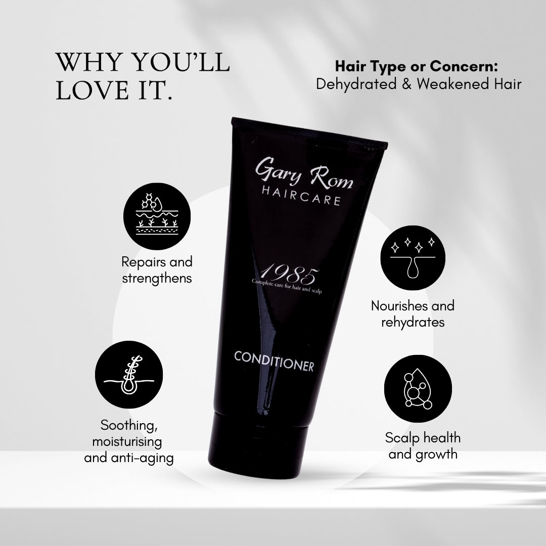 1985 Conditioner delivers rich, restorative hydration to leave hair soft, smooth, and resilient. This daily essential works to repair damage, boost elasticity, and replenish moisture, while nurturing the scalp for optimal health. The result is hair that feels balanced, stronger, and beautifully nourished from root to tip.