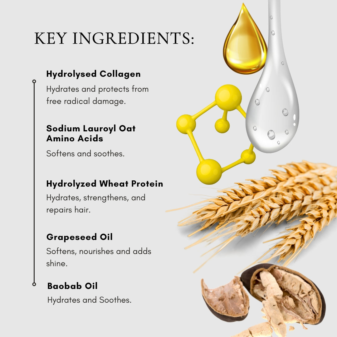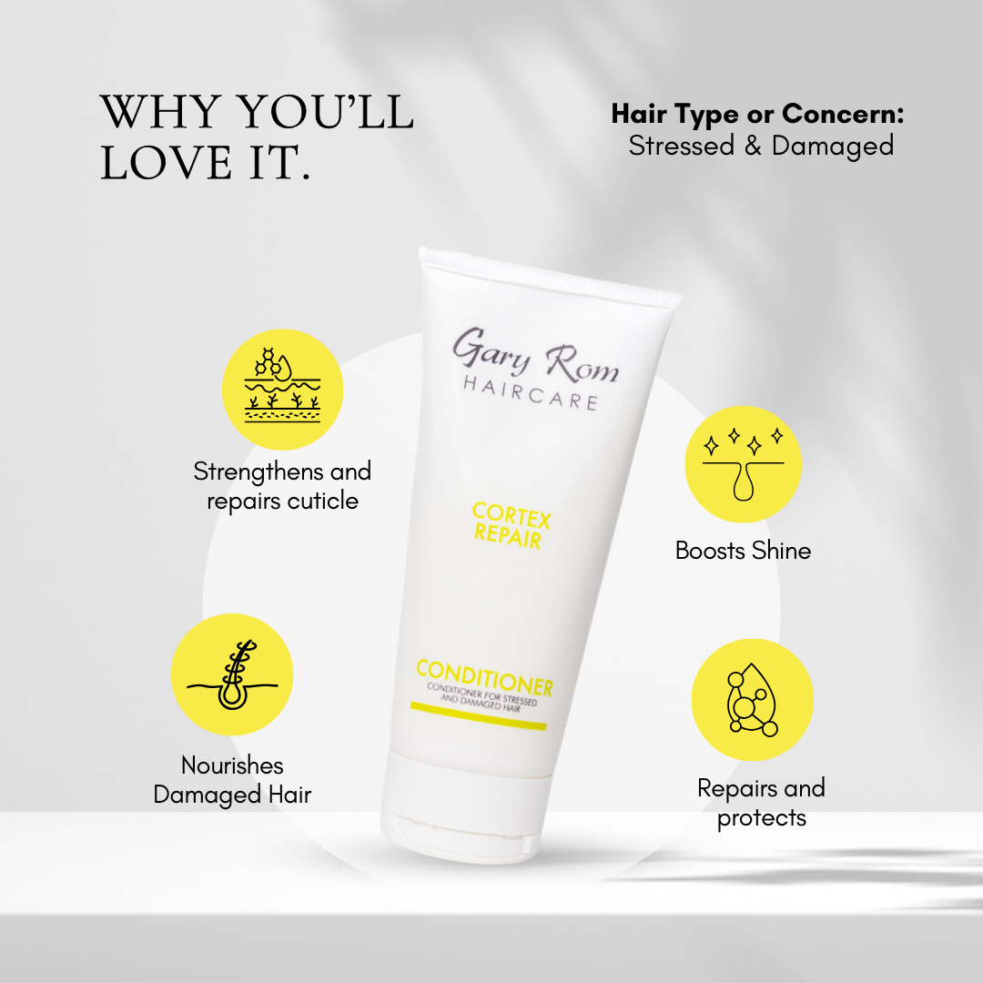 Cortex Repair Conditioner is your go-to recovery treatment for stressed and damaged hair, delivering deep nourishment and lasting protection. This rich, restorative formula is designed to strengthen and repair the hair cuticle while softening each strand for a silky, radiant finish. Packed with Hydrolysed Collagen to hydrate and defend against free radical damage, and Sodium Lauroyl Oat Amino Acids to soothe and smooth, it offers a luxurious conditioning experience that restores health from within. Hydrolysed Wheat Protein enhances hydration and resilience, while the blend of Grapeseed Oil and Baobab Oil infuses the hair with moisture, shine, and softness. Use it as part of your haircare ritual to leave hair stronger, smoother, and visibly revitalized.