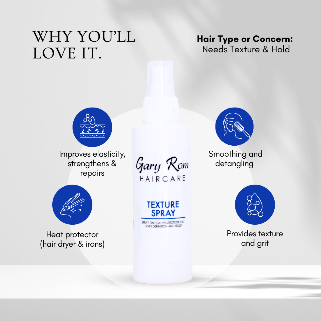 Texture Spray is a styling must-have that delivers definition, hold, and heat protection in one effortless mist. Ideal for creating lived-in texture or enhancing natural movement, this spray adds grit and volume while shielding hair from heat tools and UV damage. With strengthening and elasticity-boosting ingredients, it leaves your hair feeling touchable, styled, and protected—perfect for effortless, undone looks with staying power.